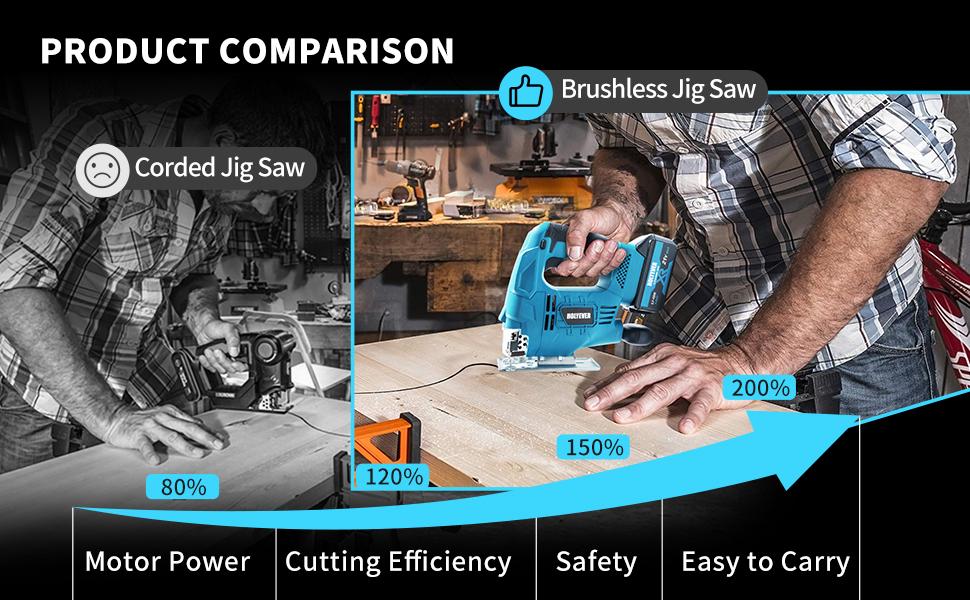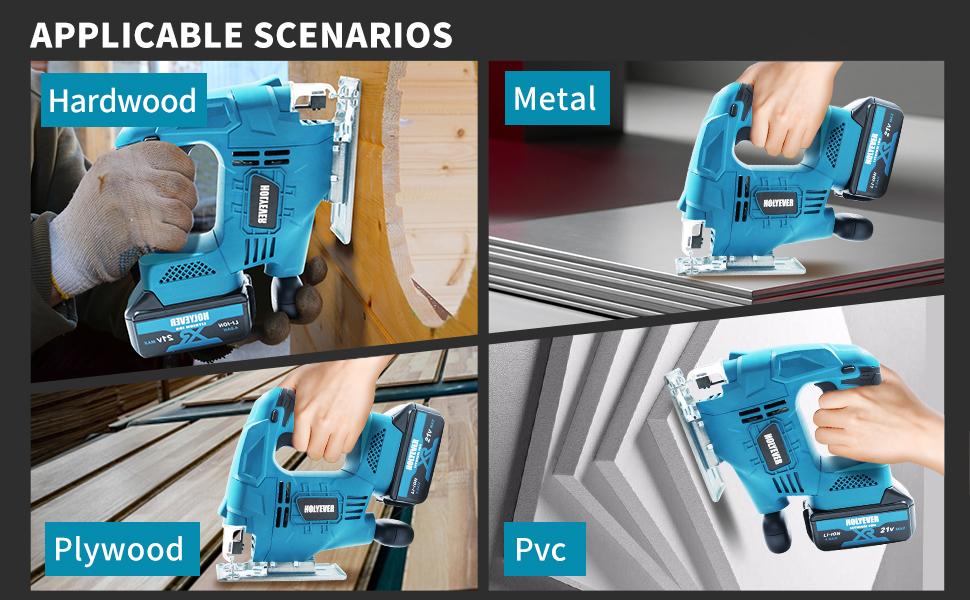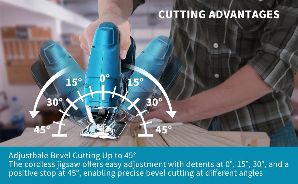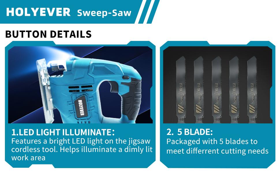 Holyever Cordless Jigsaw Tool for Makita, Brushless Motor, Variable Speed, Miter (0°-45°) with 3-Position Track Setting for Home, DIY, Crafts.