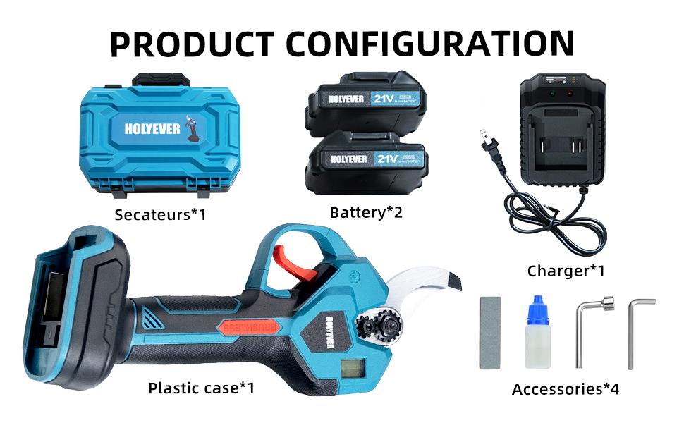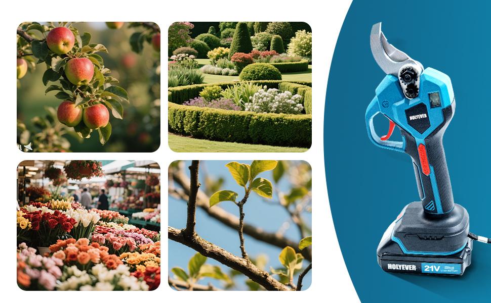 Holyever Portable Cordless Pruning Shears with 2 Backup Rechargeable Li-Ion Batteries for Home, Garden, Tree Repair, Picking, Father's Day Gifts